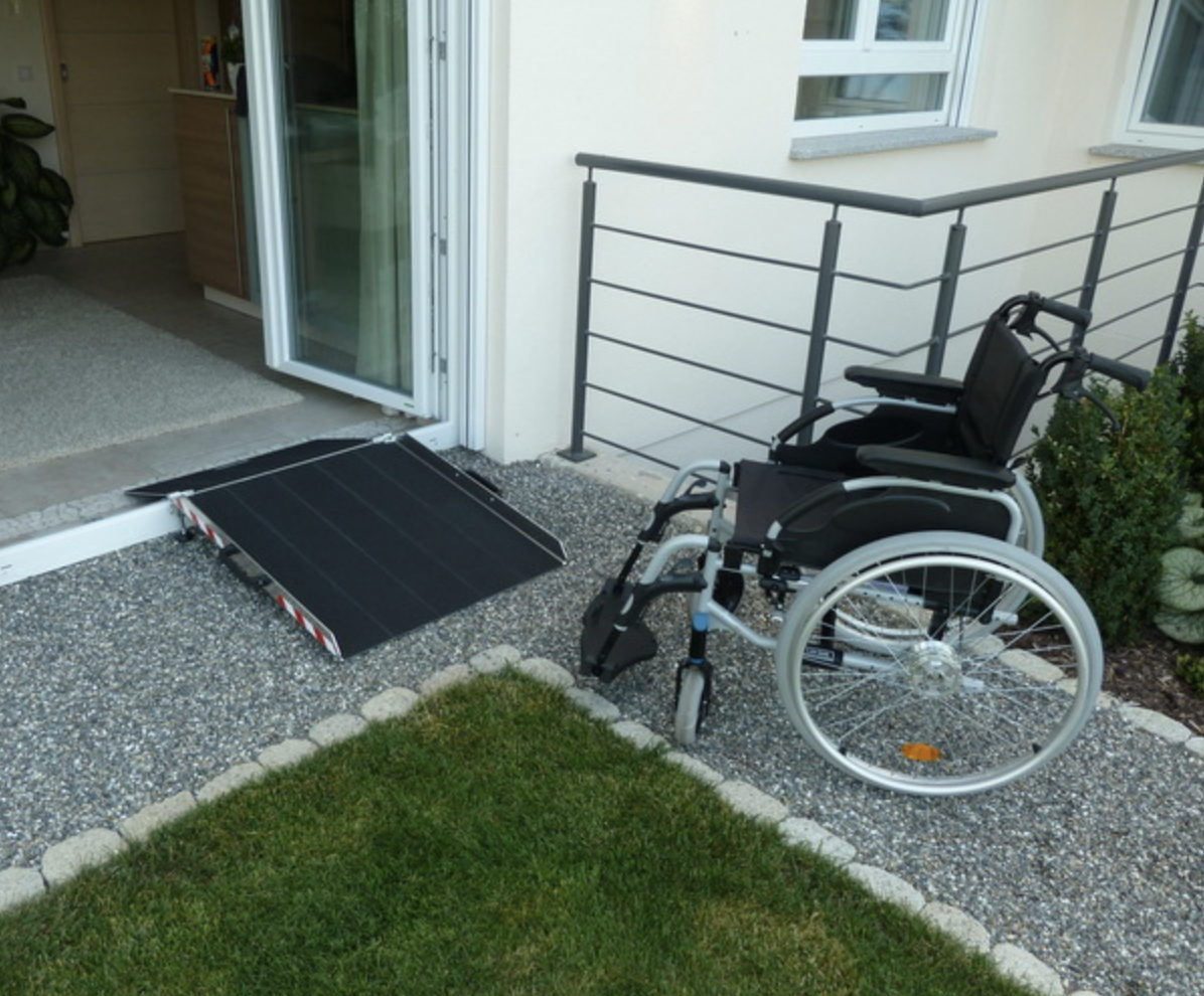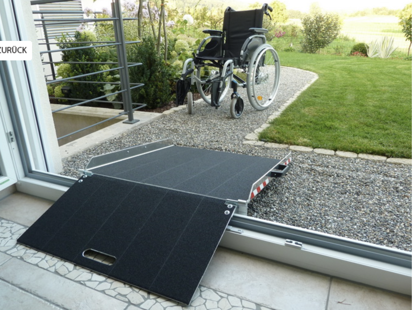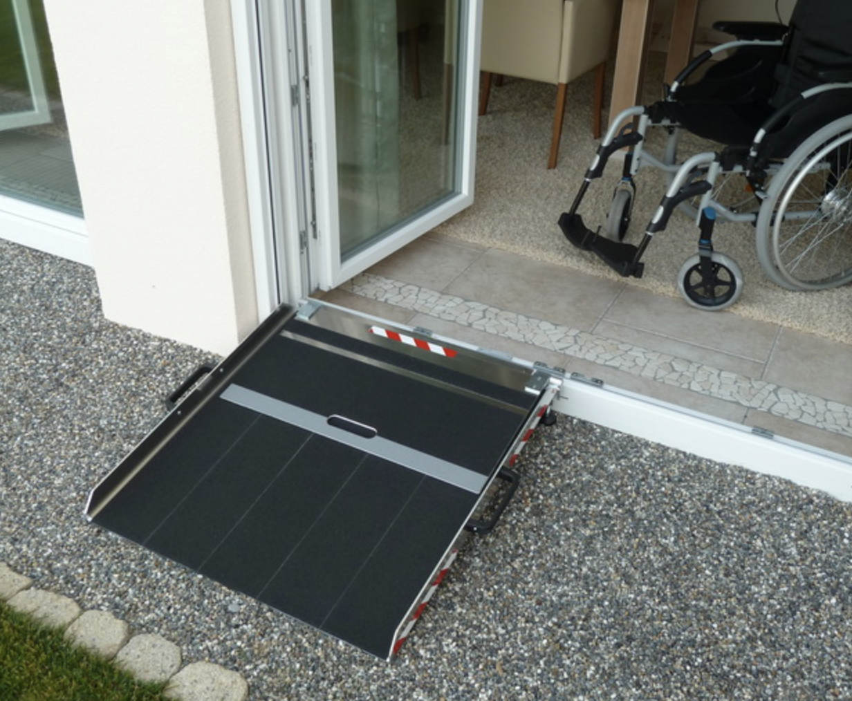 Unsere leichtgewichtigen, faltbaren Rollstuhl Rampen sind bestens geeignet als Auffahrrampen für Rollstühle und Elektromobile im Innen- und Aussenbereich.
